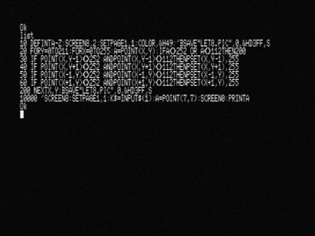 Bordea los pixels color 252 o 112 de un SCREEN 8